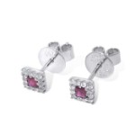 Diamantøredobber i hvitt gull med rubin og diamanter 0,12 ct W-Si.