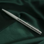 This light green Swarovski ballpoint pen combines a slender, streamlined silhouette with a modern, minimalistic aesthetic. The highlight of the design is a sparkling strip of crystals with a light chrome effect in our ultra-fine Crystal Rocks technique, which runs along both sides and over the end of the pen. Delivered in an elegant pouch, the pen also features a green lacquered barrel showing the Swarovski logo and a chrome plated metal clip. The high-quality ink cartridge can be replaced easily. An ideal gift for any occasion.